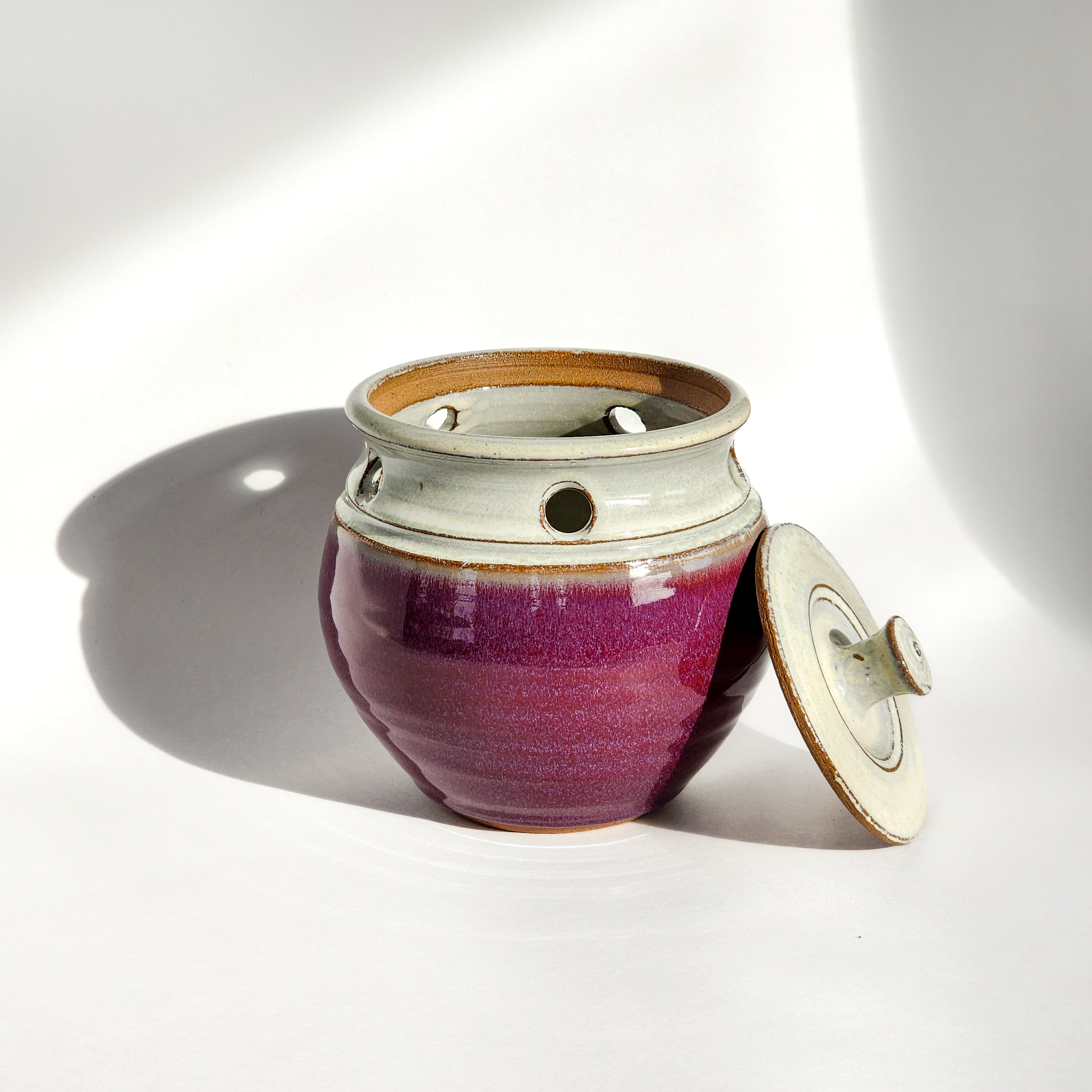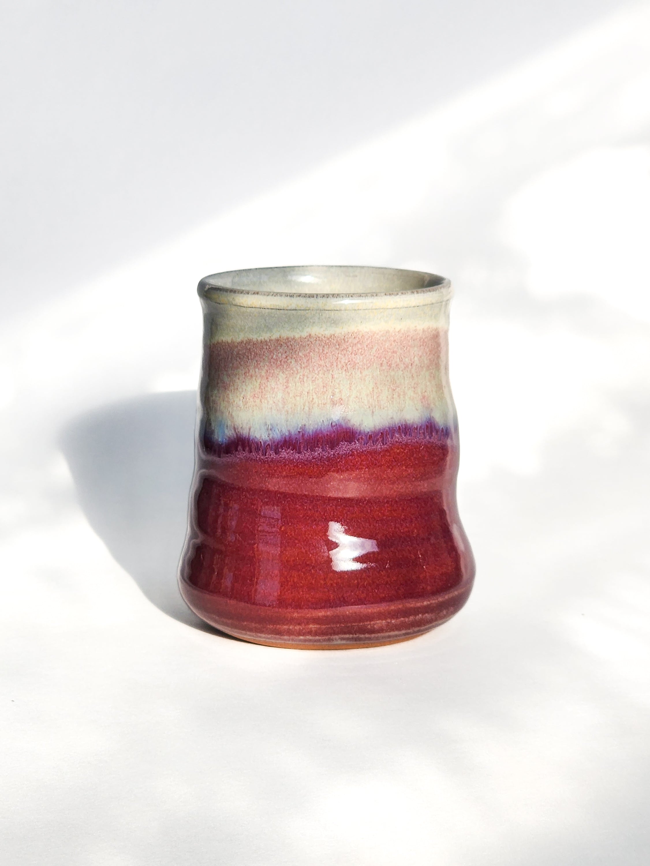 Red - a mesmerizing fusion of deep crimson tones accented by subtle hints of magenta, resulting in a vibrant and captivating color palette. Evoking images of lush berries and fiery sunsets, this dynamic hue infuses each pottery piece with depth and warmth.